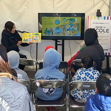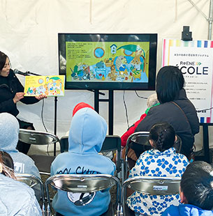 主人公のリエネと仲間たちが、自然のちからを活用して村をより良くしていこうとする姿を描いた絵本を製作。地球環境の大切さや地域や仲間との協業の大切さをやさしく理解でき、子どもたちにとって環境学習のきっかけとなる内容になっています。製作:東急不動産(株)
